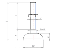 58mm Bell Feet M12 x 85mm Lg. Threaded Rod for Swivel Feet,